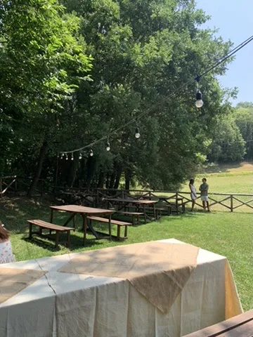 The morning began by watching a demonstration of mozzarella and ricotta (with taste tests, obviously) as well as our own chance to get our hands milky before we sat down for lunch in their al fresco dining spot. The outdoor dining room has been built around a central oak tree; you sit at long family-style tables; the roots of the earth and the origins of food surrounding you.